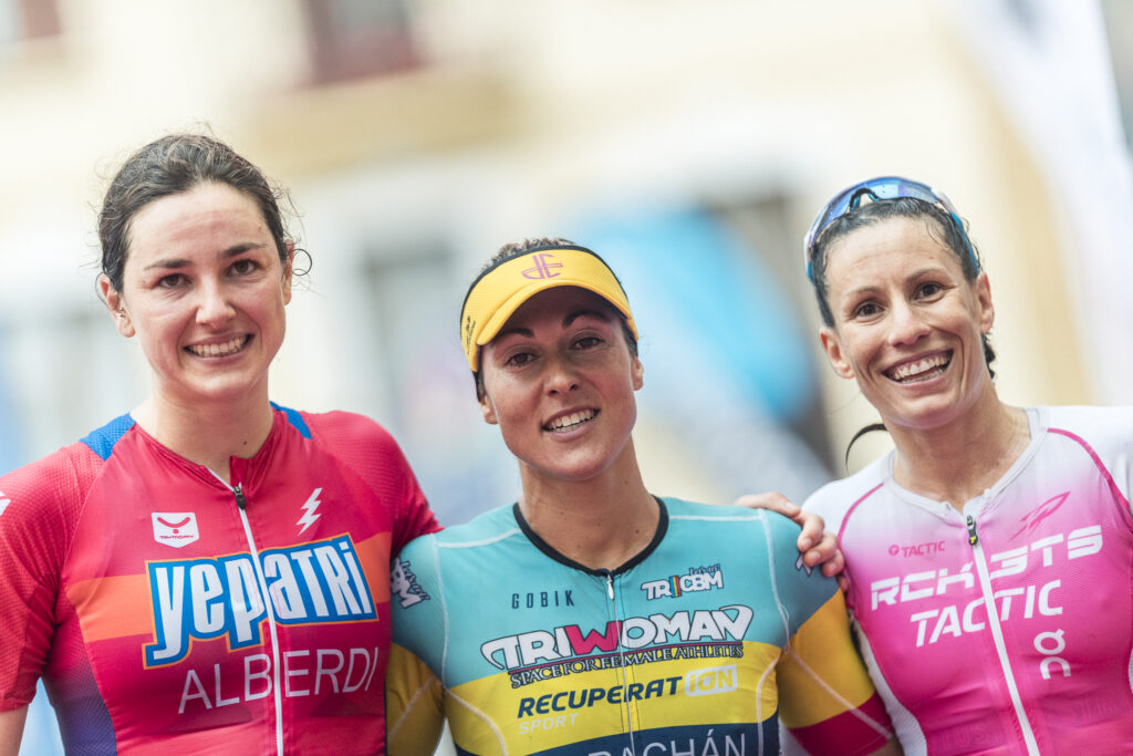 En categoría femenina la vasca Helene Alberdi era superada en la primera parte del sector ciclista por Judith Corachán. Por detrás, Sara Loehr trataba de afianzar la tercera plaza en su batalla con la vigente campeona de la prueba Joselyn Brea.